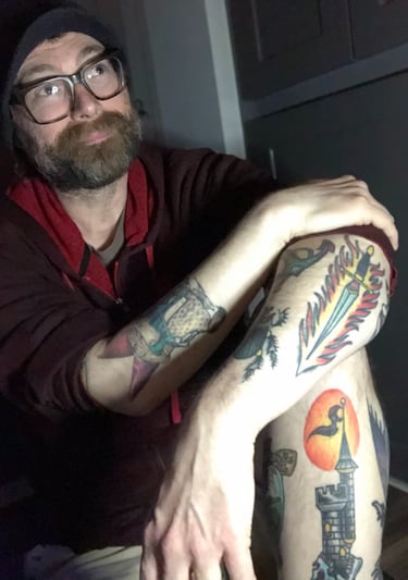 If you see me tattooing, you will usually hear me laughing with my clients and talking about D&D, comic books, drag queens, cartoons, 80s and 90s pop culture, or talking about my pets.